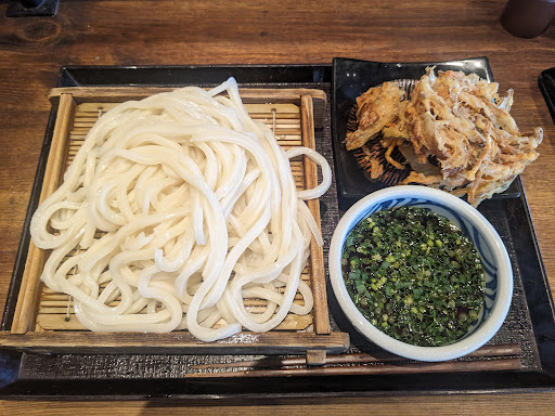 うどんは讃岐うどんなのでコシがあり、 モチモチ感とツルみがあり旨い! かき揚げは、サクッという食感ではなく、 ザクッとした食感でどこをかじっても固い… これは揚げ過ぎなのか?こういうものなのか? つゆに浸しながら食べましたが、ザクッとした食感は変わらず、固めが好きな人には良いかも… でも個人的には固すぎました…
