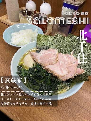 Read moreこの日は朝ラーがしたくて 北千住の武蔵家北千住西口店へ。 こちらは朝5時から営業をされています。 場所は足立区千住2というところ。