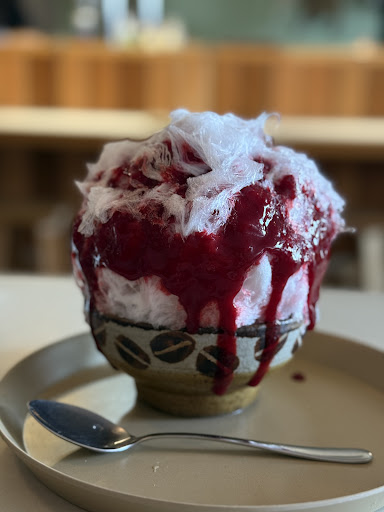 Simple, snug hangout preparing shaved ice desserts, including a take-out option.