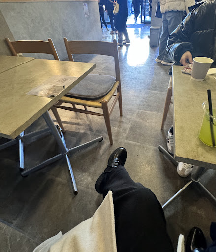 本題に入ります。会計を終わらせ席を確保しようとすると、私たちは3人で来たのに一つの机を使えと言われました。細い机なのに、窮屈で最悪でした。
