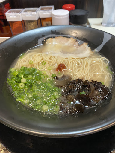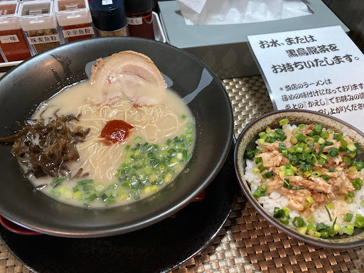 Read more平日の夜10時頃に訪問、店内ガラガラでした。 ボックス型のテーブル席が6、7で、店内手前と奥がカウンター席でした! 店に入ってすぐに券売機があるので、ここで食券を購入してもいいし、席に着いてから店員さんに頼んでもどっちでもいいとのことでした。 この日は初訪問ですので、基本のラーメンを購入。するとガラガラなのに約3分くらいしておしぼりと一緒に麺の硬さやスープの濃さ等の細かい好みを記載できる用紙をくれるので記載後返します。さらに7、8分で着丼。 で、食べる前に水が来ない!と思っていたらなんとさっきの入口の券売機の右手にセルフで水を汲む場所がありました!これは知らないと(初訪問だと)券を購入して奥の席にそのまま進んだら、最後まで水にはありつけません!(案内してほしい) それから、着丼してなんかビジュアルに赤が無い!と思ったらこれも別客のカップルが『紅ショウガと高菜下さい!』と言ってるのを聞いて(そういうシステムなのね)とわかったので(案内して欲しい)もしくはテーブルに備え付けにしてほしい。 しかも、紅ショウガ要求してから到着するまでなぜかまた3分くらいの謎の時間… 1人オペとはいえ、自分とそのカップルしかいないのにスピード感が???でした。 と、こんな風に書きましたが、実は味はかなり良かったのです。自分的にはスープは本家本元よりクリーミーでコクがあって美味しかったです。麺も博多豚骨そのもので、しかも好みの柔らかめオーダーバッチリでした。この日夜も遅い時間だったので替え玉は控えましたが、ホントは1、2回替え玉したいくらいでした…そう、味だけで評価したら☆4ですが、最初に書いた段取りや手際の悪さ&水の場所や紅ショウガなどサービス品等の説明が☆を1つ下げてしまいました。 それと、テーブルに灰皿が置いてあって店内喫煙可となっているのには目を疑いました!今は新幹線も喫煙不可となっている時代にこういうのは流行りません。(因みに自分も元愛煙家です)お子さん連れや喘息持ちの人もいると思いますし…何よりせっかくのラーメンの味が台無しになってしまいます。 店の外で!にしてもらえ...