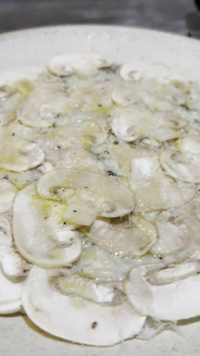 🍄トリュフ香るマッシュルームのリゾット 至福の味覚体験🍄上質なトリュフとマッシュルームの絶妙なハーモニー❗️シェフのスペシャリテ、香りも食感も極上で、深い余韻に浸ります❗️病みつきになるリゾット。単品でいただいても1500円🉐 綺麗に盛り付けられたマッシュルームの下に トリュフが効いたクリームソースが濃厚