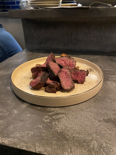 【レポ】 ☆極み黒牛の炭火焼き -フライドポテトと一緒に- 2,880円 こちら優勝メニューです。 低温でしっかり火を入れているとのことで、提供まで40分ほどかかるのですが、お肉の甘みが半端じゃなく、岩塩との相性も抜群! ボトルで注文したワインが圧倒的に前に進んで行ってしまいました(笑)