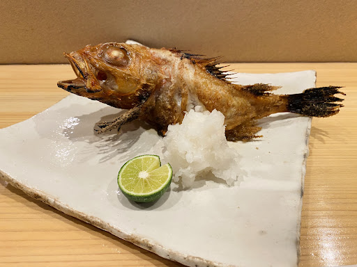 The fluffy flesh of the large kinki was amazing. The saltiness was just right, and it was delicious when eaten with a squeeze of sudachi citrus.