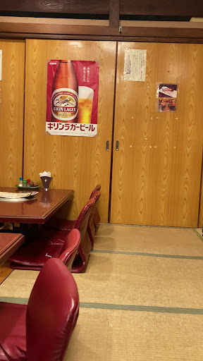 2025.01.15平日 19時 予約にて訪問しました。焼鳥購入で利用したことは ありましたが 今回は焼肉です!チビちゃん連れということもあり 2階座敷席を予約しました。黄色に店名入り看板と緑色の店名入り軒下テント屋根があり外観は古風。1階はテーブル椅子席(約18席)・2階(最大40席)は座敷席になり既に1階は満席状態でした。2階座敷席は畳に座卓・座椅子席で チビちゃん含め ゆっくり過ごすことが出来ました!そしてロースターは炭火の無煙ロースターなので ハンガーに掛けたアウターや服に焼肉臭が付かなくて最高です!テーブルには タレ・レモン・皿・ニンニクが準備されています。ニンニク 気になり スタッフさんに確認すると 焼いて食べてくださいとのこと。とりあえず 生ビール!生ビールはキリンラガービールで生中(730円)・生小(500円)・瓶ビール有り。お通しに もやしナムルと 同じ味付けの野菜サラダ。見た目は辛そうですが それほど辛くなく 甘さも感じ 食が進みます。おすすめメニューのタンシタ(1080円)・並タン塩(1560円)をオーダー。タンシタ初めて食しましたが 歯応えがあり美味しい!生レモンを絞った並タン塩もいい。波に乗ってきたので 続いて 豚バラ(990円)・しいたけ焼(600円)・ハラミ(1590円)・ポークウィンナー(680円)・カルビ(1590円)・サンチュ(600円)・大盛りライス(350円)・冷麺(1100円)・バニラアイス(380円)と美味しいお肉をそれぞれ堪能しながらお酒が進みました。カルビはタレに漬け込んであるので 小皿のタレを付けずにそのまま食せ めちゃくちゃ美味しかったです!カルビとごはん最高! チビちゃん用に 玉子スープ(580円)+うどん(200円)でオリジナル玉子スープうどんを作っていただきました!臨機応変な対応が可能なお店 ありがたいですね。 スタンプカードがあり 作成してくださいました。御食事3000円ごとに押印。30ポイントでなんと4500円割引きになります!(ランチメニュー・焼鳥除く ※利用券は2枚迄) 焼肉食べたくなったら また行きます。