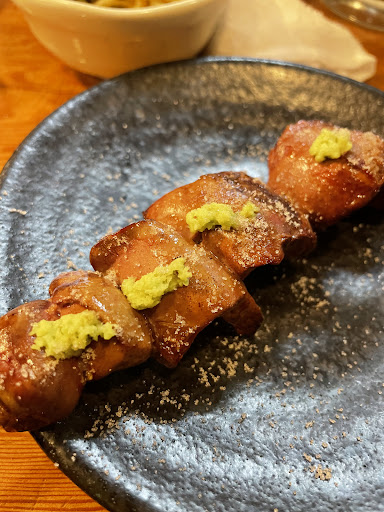 串焼きは丁寧な仕事が施されていて全体的に美味しい。 日替わりのオススメで海鮮やら知らない部位やらが食べられる。 特にレバーが絶品。 焼き方を調整してくれるらしいのでレア目が好きなら伝えても良いかも…
