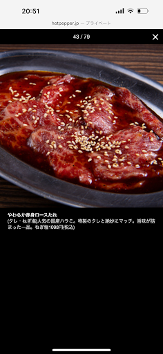 今回5歳の息子が最近焼肉にハマっており、脂の少ないロースが大好きなため、「やわらか赤身ロース」を注文させていただきました。店員の方がボソッと商品名を言って置いてかれたお皿。私たちもしっかりなんの商品か聞いてなかったのは悪いと思いますが、最初豚肉かと思いました。ロースがあとからくるのかと思って待っていましたが、全然こないので店員の方に、「ロースはまだですか?この商品はなんですか?」と聞いてみました。2人の店員の方がきて、そのお肉を見ても「確認してみますね」とのことで、その後「こちらがロースです」と返答がきました。 メニュー表に載ってた写真も、ホットペッパーにのってたロースの写真と全然違うので唖然としました。 分かりやすいように肉を少なくして写真を撮りましたが、全てこの大きさの肉。 大人4人いましたが、全員豚肉の細切れがと思ったぐらいです。これで989円?1000円弱の値段払いましたがこれは店として毎回出してるんでしょうか?細かすぎて、食べても本当にロースだったのかも分からなかったです。 子供もほぼ食べず終わってしまいましたし、焼いたらもっと小さくなってほんとに細の集まりみたいな感じでした…。店員さんもその肉を見てすぐロースです!と言うこともなく大丈夫?っていうのが正直な感想です。 これは毎回行って頼んでも同じようなこのお肉が出るんでしょうか????毎回このようなロースが出るのであればメニューの写真も変えてくれないと困ります!!