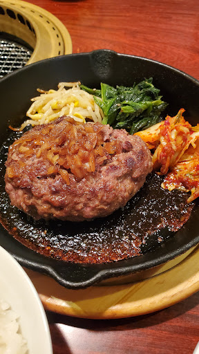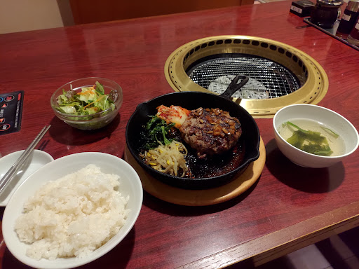 Read more土曜日の14時ごろ行きました。 友人が店の前を通ったとき、バンバンの名前を気に入ったらしく、お昼ご飯このへんでどうしよっかと話していたら「バンバンやってるかなー?あ、1000円から焼肉ランチしてるみたい!」とのことで行きました。 ほとんど混んでなくて2、3組の食べ終わったお客さんがいるという感じでした。 焼肉ランチも捨てがたかったけど、「和牛ハンバーグ」に心を撃ち抜かれコレ一択でした。 スマホで注文。 しばらくしてジューッといい音と醤油の香ばしい香りとともにハンバーグのプレート、大盛りご飯、わかめスープ、サニーレタスのサラダが来ました!😋 和牛ハンバーグは箸で簡単に崩れ、中はレアの綺麗なピンクと白。割った中の写真見て!! ちょっと鉄板の方に押し付けて焼きめして食べました。ハンバーグの上に玉ねぎのみじん切りの醤油ベースのソース(タレ?)がとても美味しかった! 付け合せのほうれん草やもやしはナムルの味付けでごま油の風味が美味しいです。 レタスのサラダは、間違いだと思いますが、レタスの葉元というか、茎というか葉が集約されてる硬いところが入ってました!😨 ここの部分もサラダとして常に提供されてるんでしょうか??😨 わかめスープはいい塩味でさっぱりと口の中の和牛を流してくれて美味しかった! ご飯はちょっとやわめで噛まなくてもいいくらいで、私の好みでした! ハンバーグと一緒にご飯を食べるとあっという間に食べれてしまいました。 ハンバーグの後半は卓上の秘伝のタレとかレモンを垂らすと、ステキな味変になって、またさらに美味しかったです! お値段は1400円ほどで...