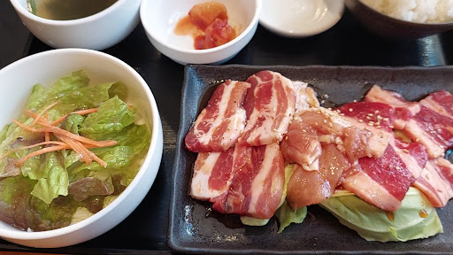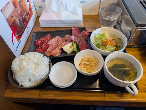 Read more久しぶりの八王子 土曜日、11時半頃ランチタイムがあるこちらの焼肉屋さんを発見、入ってみる事に。 店内はカウンターとテーブル席がありました。 注文した物は焼肉3種盛りセット(1500円)、タン、ハラミ、和牛切り落としのセット、ご飯大盛り無料です。 10分ぐらいで配膳、肉の他にサラダ、ナムル、わかめスープ、生の茄子、玉ねぎ、ピーマンがあるのも嬉しい所 肝心の肉はいい肉を使っているのが分かりました、和牛の切り落としも脂はしつこくなく口に残らない、タンも適度に噛みごたえがありますがきちんと噛み切れる、この価格帯でこのお肉ならかなりお得かも。 駐車場もあるので八王子に来たら絶対また来たい、ご馳走様でした。 ちなみに人によって重要な判断材料になりうる排煙ですが店内全く煙くなく快適に焼肉できました、出た後もそこまで服に匂い...