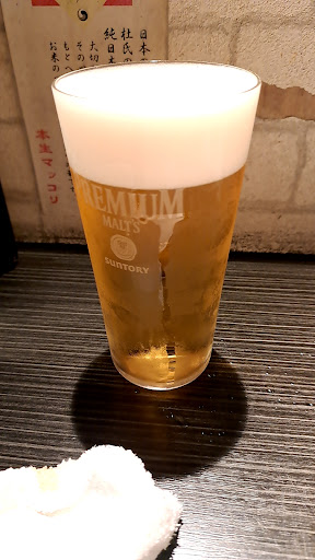 ○ドリンク類 色々な種類があり、麹レモンサワーといったものもある。 値段も、それほど高くなく(ジムビームハイボール495円など)頼みやすい。 ビールはプレモルで、薄いグラスで提供してくれる。うまい。