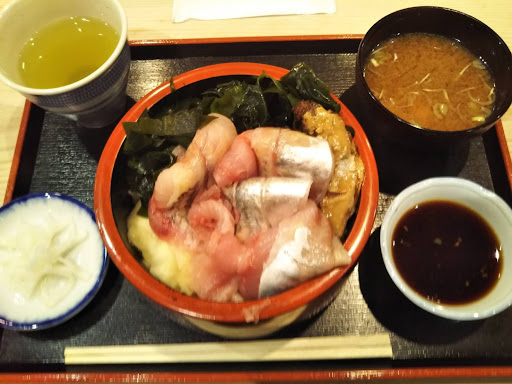 2/8 ランチタイムにアジ丼〜アジの身の色に◎〜😁あらの味噌汁も美味しく完食でした。おすすめ丼も良いよ〜店の前に1台車停めれます〜今日はラッキー空いてました〜🎶魚の花〜小魚とクルミのつくだ煮かな〜お...