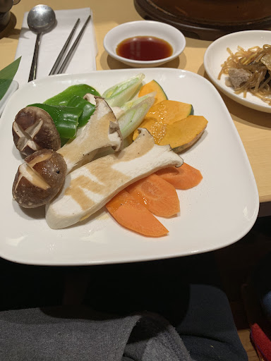 The vegetables and pork belly were nice! I cooked it till it had a nice sear I could taste the flame after the food was cooked, which is important in Korean bbq.