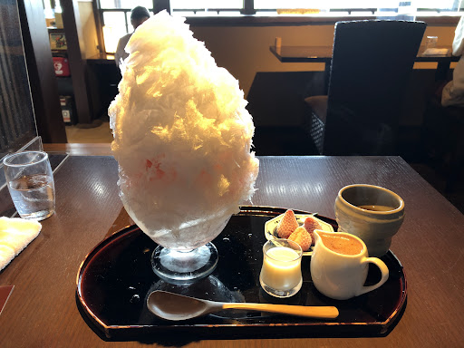 Another hidden gem in my area! This is a dessert cafe in a very old building owned by a particular family for a number of years. They have pamphlets and can give you info if you ask. It was very interesting to learn the history of the building. This place is very popular and can get crowded so don’t be surprised if you have to wait. I had the shaved ice! It was a large mountain of shaved ice but you have pour the syrup and milk on it yourself. It was quite good, you can get additional syrup for ¥50 I know because I ran out. I also sampled the ice cream dessert, it was also good. Be sure to walk the perimeter because it’s very beautiful area. If you come to the...
