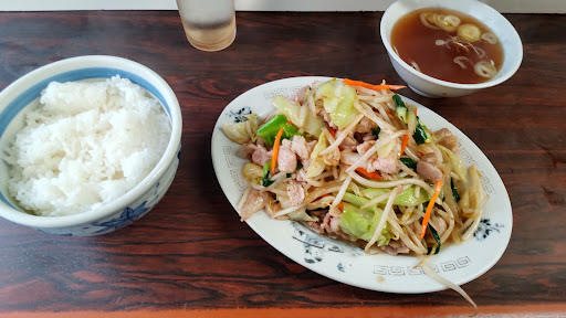 Read more店頭にサービスのランチが書かれていて少し安くなります。今日は通常¥750の広東麺が半ライス付きで¥700でした。具材は小間切れ豚肉と白菜人参玉葱ピーマンタケノコ干し椎茸と短冊切りのナルトといった一般的な物に、広東麺としては珍しく小口切りの薬味葱も入っていました。生駒軒らしい細縮れ麺と醤油スープも美味しく、上記の具材が入った餡の味付けも良いです。お店は綺麗とは言い難いので駄目な人は駄目かもしれません。また店主ワンオペなのに出前もしているので時々居なくなります。 再訪で今日はスタミナメン半ライスをいただきました。広東麺に似た物でしたがニンニクのスライスが入って目玉焼きが乗っていました。 4月17日再訪してランチの焼豚メン半ライス¥750をいただきました。焼豚と言っても肩ロースの煮豚で四枚乗っています。此方のランチは以前はラーメンと半チャーハンとかラーメンとミニカツ丼なんかので日もあったのですが、最近は◯◯メンと半ライスのパターンになっているようです。 10月9日のお昼に半年ぶりくらいで伺ってランチのワンタン麺半ライスをいただきました。昭和の町中華としては意外なほど肉餡たっぷりのワンタンが五つ乗っていました。 12月16日に1年ちょっとぶりに再訪するとランチが肉野菜炒めライス¥750だったのでそれをいただきました。肉野菜炒めが¥650でライスが¥250なので¥150お得です。肉たっ...