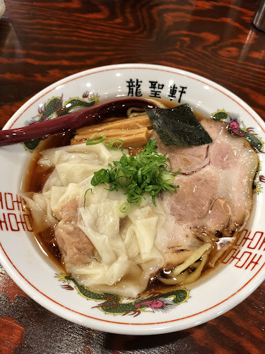 JR町田駅近くにある町田龍聖軒さんにお邪魔しました!煮干しラーメンに定評のあるお店で、今回は、新潟背脂煮干しラーメンを狙って行きたいと思います!お店に着いたのが19時過ぎで先客は、2名程です!お店に入店したら券売機がありますので券売機から醤油ラーメン大盛りと背脂煮干し変更券を購入してカウンター席に着席!店内には、カウンター席とテーブル席がありますので用途によってご利用下さいね!待つ事7分程度でしょうか?その位で念願の背脂煮干しラーメン大盛りが到着です!見た目から美味そうなラーメンで、背脂とチャーシューが、また食欲をソソりますね!早速スープを一口!背脂の濃厚なコクとそれに負けない煮干しの出汁の強さを感じるスープで美味いです!玉ねぎを加えて飲めば、玉ねぎの甘みが加わり更に美味しくなる背脂煮干しスープ!それに合わせる様に麺も平太麺で背脂の濃厚なスープが良く絡み美味すぎます!そしてチャーシューは、結構な量が入っていて、これが肉の旨味を感じるチャーシューで美味いです!隙を感じさせない完成度の高いラーメンで、ご機嫌になりながら麺を啜ります!美味いスープ、美味いチャーシュー、喉越し良い麺、どれを取っても最高のラーメンと感じさせる一杯でしたね!特筆すべきは、やはり背脂煮干しスープとチャーシューですね!癖になる味わい豊かなスープで食べていて飽きが来ないスープで満足しました!チャーシューも量、そして噛めば噛むほど美味いチャーシューでコチラも満足!流石は、町田龍聖軒と言える内容でした!煮干しの全てを知るからこそ作れる極上背脂煮干しラーメン!そのスープは、背脂の主張と煮干しの主張が攻めぎあいながらも均衡を保つ極上スープで、麺と共に食せば煮干しの香りと背脂のコクを同時に感じる事が出来る極上スープ!鼻孔で香りを楽しみ、舌でコクを楽しむ、二層型の素晴らしきスープ!美味さの影に努力あり!努力したからこそ熟知した煮干しの真髄!極めし者の名は、龍聖軒!皆様お見知り置きを!それでは、極上背脂煮干しラーメンと作ってくれた店主に心から感謝を込め...