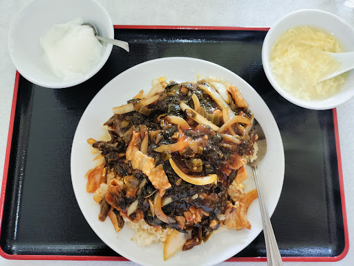 Read more行ってみたいと思ってから、かれこれ7,8年近く経つだろうか…初入店しました。11時半頃の入店で、先客1名。エアコンは作動していますが、寒い店内。テレビでは中国語のドラマが放送されています。 年配の男性のワンオペでした。酢豚定食(¥850)、酸辣湯麵(¥700)、餃子(¥500)を口頭で注文です。待っている間に奥さんらしき女性が入店してきて、出来上がったお料理を運んでくれました。 肝心のお味の方ですが、酢豚には揚げた豚バラがたくさん入っていて、玉ねぎ、ニンジンと一緒にケチャップ主体の甘みの強い餡でまとめられています。玉ねぎの入った玉子スープが美味しい。盛りっぷりのいいご飯はジャーの底をかき回しながらよそっていたので、前日の残りらしく、美味しいとは言えないのが少し残念。 酸辣湯麺はたっぷりの野菜餡がかかって登場しました。この餡をおかずにご飯を頂けそうです。お味は酸味、辛みをもっと効かせた方が自分の好み。卓上の酢やラー油で調整すればいいだけの話ですが…ただ、スープらしきものがほとんどなくて、まるで餡かけまぜ麺のようになっていたのはかなり残念。麺も所々トルネード状に絡まっていました。 反して餃子はとても気に入りました。肉感の強い具材が厚い皮に包まれていて、手作り感半端なし。美味しかったです。 総じてコスパは良い方だと思います。 再訪して、今度は人気のチャーハン...