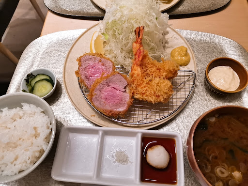 Read more・ロースカツと上ヒレカツ定食A (ロースカツ120g、上ヒレカツ80g)¥1,960 ※フランス産トリュフ塩、おろしぽん酢、醤油、とんかつソース、柚子胡椒 ※ご飯、味噌汁、キャベツおかわり自由