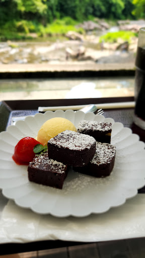 Read more黒茶屋さんの門の左手から入る趣のあるカフェ。ここで1,000円の玉子サンドをテイクアウトして、河原におりてランチすることに。