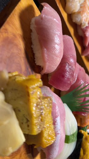 注文時にご飯(シャリ)の量を聞かれます。 普通でお願いすると、普通の寿司の1.5倍くらいの大振りな握り。箸で持つとずっしり。女性が一口で食べようとすると口一杯。マグロなどネタが噛みきれる系は2口に分けるのが良いかも。 平日ランチには共通の天麩羅と美味しい茶碗蒸しが付くので、ごはん少なめでも丁度良いのではないかしら。分厚いだけではなく美味しいネタ、だし巻き玉子もギッチリ。しじみの味噌汁も好き。 ウニ、イクラ軍艦のネタは良いんですが、胡瓜は回転寿司みたいで個人的にマイナス要素になります。