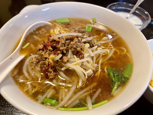 Read more11:30でガラガラ。店主さんがホールにいて接客(あとからバイトさん到着)。 壁のメニューを注文したら「ダメ!」って。無理かなと思いつつ聞いたから理解はできるんだけど、言い方....。 牛筋担々麺と、ランチメニューから1品選びそのご飯なしをその店主さんに注文。 牛筋担々麺が先に到着。麺やわやわ肉カチカチ。もう一品は結局忘れられたか作るのが面倒だったのか、担々麺食べ終えてしばらくしても作り始めず、もうイライラしたのでバイトさんに退店の意を告げお会計。過去お邪魔したお店さんの中ではワー...