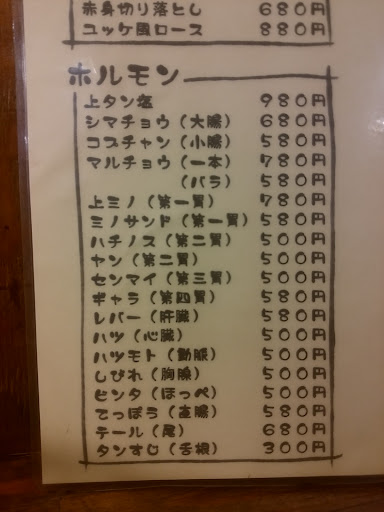 お気に入りは「タン刺し」「ハラミ(並・特上)」「ホルモン」。 軽くさっと食べたい時にちょうど良く、味も安定しています。