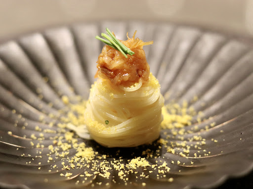 ) シンガポールのスパイシーな黒胡椒風味のソースで ピリッとしたアクセントになってるのも良き♡ ▶気仙沼産吉切鮫フカヒレ 鴨やフォアグラなどが含まれた“金湯”という出汁に 吉切鮫を漬け込んで味を含ませながら煮込んだもの。 旨みが凝縮されまくっていて、美味しすぎっっ!!! 黒酢で味変できるのも嬉しい♡ ▶和牛ヒレ肉カツサンド 海鮮醬 A5ヒレ肉を180度のオイルの中で30秒間フライにし、 低温調理で余熱火入れ、最後に高温のオイルで揚げ直し 自家製のパンドゥミに海鮮醬というソースを 合わせて中華らしさを演出( ¯ ꒳¯)✨ 肉厚ジューシーでやっぱりここのカツサンド好き テイクアウトしたいくらい美味しい!最高!! ▶坦々麺 練りごまと練りピーナッツの濃厚な坦々麺。 細くてコシの強い香港麺がしっかり絡み合って激うま! ▶粽 舞茸の香りをぶわぁっと広がるっ!! ねっちょりしっとり系でご飯に旨み凝縮!!! ▶Crémet d'Anjou 懸鉤子 フランス発祥のレアチーズケーキに フランボワーズとココナッツのソースにクランブルを添えて。 甘味や酸味のバランスも良く、食感も楽しい♡ ▶糯米糍 Fraise 香港の伝統的スイーツで糯米糍というココナッツ団子。 苺・蓮の実の餡・もちもち生地・ココナッツパウダーで、 苺大福みたい!!ココナッツの風味なのも良い!! ▶雲南普洱茶 Creme glacee プーアール茶の濃厚なアイスクリームで、 ねっとりとした旨みがたまらない(///ω///)♡ 大好きな和牛ヒレカツサンドを始め、 全てのお料理がとても美味しくて大満足でした!! ——メニュー内容—— ◇◆Premiumコース ¥16,800◆◇ ◇烏賊 XO醤 Cappellini ◇寒鰆 藁焼き Cauliflower ◇鱘 Brandade ◇甘海老 香港橄欖菜 油条 ◇南方くらげ Lime ◇雲白肉 毛沢東 Caviar de aubergine ◇山形牛サーロイン よだれ牛 ◇鍋貼 羊 Mint ◇香港麵 仁淀川山椒 ◇山梨県産信玄鷄手羽先 フカヒレ包み焼き ◇干貝 焼賣 ◇春菊 蝦餃 ◇小籠包 鶏白湯 ◇咸水角 楚蟹 Brie cheese ◇空芯菜 清炒 ◇清蒸魚 魚湯 娃々菜 ◇平茸 上湯 Consomme ◇海老 Laksa チリ ◇花捲 五香粉 ◇エルダーフラワー Granite ◇蝦夷鹿 黑椒醬 ◇気仙沼産吉切鮫フカヒレ ◇和牛ヒレ肉カツサンド 海鮮醬 ◇坦々麺 ◇粽(+¥600) ◇Cremet d'Anjou 懸鉤子 ◇糯米糍 Fraise ◇雲南普洱茶 Creme... Read more中華×フレンチ、全26品の少量多種!初めての広尾グルメデートはぜひここで♡