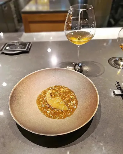 広尾駅から徒歩7分程。 中華の”強さ”とフレンチの”繊細さ”を組み合わせた、 怒涛の26品を少量多種で頂けるフルコースは、コの字カウンターで全卓一斉スタート。 ライブ感もあって肩肘張らずリラックスできる空間 品数が多いですが決して慌ただしくなく、一品一品味わって楽しめます。