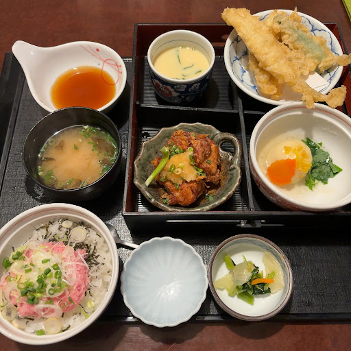 久しぶりに来ました。彩り弁当茶碗蒸し付きを注文して食べました。ご飯は少し硬めですが私にはちょうどよい硬さでした茶碗蒸しは出汁が効いている茶碗蒸しです食べ進めていくと出汁がきいた汁が残りましたので飲んでみました。少ししょっぱい気がしましたが気にしなければ気が付かないと思いますファミレスとしては良い方だと思います。白和えは甘さなど丁度いい。 刺身はこの時期仕方がないかもしれませんが鮮度はイマイチです。 体調の悪い時は生物は避けてください温かいもので身体を労 るようにしましょう。漬物は大根の葉でした漬物だけあって塩分が強めでした、この時期は食中毒など予防する意味で塩分を強くすることがあるようです。漬物の大根の葉は美味しいのですが 出来ることなら出す前に一手間かけて少し塩分を抜くともっと美味しく食べられると思います お味噌汁はとろろ昆布の入ったお味噌汁でした。これも美味しいのですが素材を活かすために 少しだけ塩分を控えられたほうがもっと美味しくなると思います、素材のとろろ昆布にも塩分が含まれているので、その塩分を活かすことにより上品な味になり美味しくいただけます。 天ぷらはオクラ、エビ、かぼちゃ、れんこんの4点と天つゆと少しの大根おろしです。海老の天ぷらはこれ以上、求めるのは酷だと思います。カボチャのてんぷらは緑の皮がついた状態で揚げられていましたが、これはこれでありかもしれません。蓮根はシャキシャキしていて良かったと思いますオクラの天ぷらは普通だと思いました。 全体的には塩分を、ほんの少し控えることによって素材を活かすことによってもっと、美味しくなって良いと思います。 デザートとして冷やしクリーム白玉ぜんざいをいただきました 真ん中にのアイスがありまわりに白玉が3個お皿全体にぜんざいが 盛り付けてあり味の方は可もなければ不可もない普通のぜんざいです。アイスもぜんざいも、お砂糖で甘さが調整されているようです。 喉越しにお砂糖の甘さが残らない甘さが好きなのですが、お砂糖を少し減らしてほんの少し塩を入れることによって変わってくると思います入れ過ぎは逆効果となりしょっぱくなるので要注意です。 辛辣なことを書きましたが、あくまで個人的な感想です また、行くことがあれば食べに行きます。そのとき今以上に美味しくなっていることを期待しています