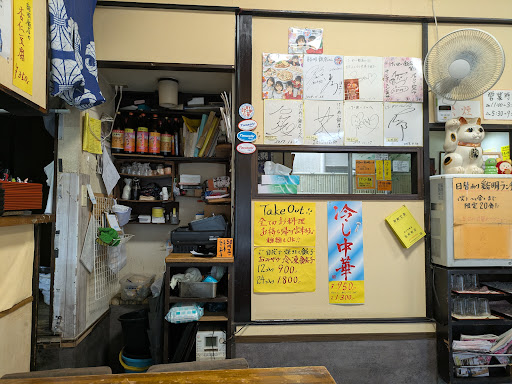 町中華で飲ろうぜ聖地巡礼してきました。GWの最終日にお店行って空振りしたので、5月下旬の土曜日にリベンジ訪問。 お店の広さは4名席×2,カウンター2,奥の小上がり4名席×4くらいです。14時20分過ぎに訪問で先客4名。ランチタイムラストオーダーぎりぎりのタイミングでした。 本当はサンマー麺注文の予定でしたが、私の好きなざる中華の文字を見かけたのでざる中華セットと餃子を注文。後は生ビールを注文しました。 まずこちらの生ビールですがグラスがキンキンに冷えておりとっても美味しい!泡もきめ細かく品質高いです。思わず想定外のおかわりをしてしまいました^^; ざる中華はわさびがついた和風なやつ。私にドンピシャなざる中華です。麺がしっかり締まっててとても美味しかったです。セットのチャーハンも味がしっかりしててアツアツで美味しい。私的には紅しょうががのってるのもポイント高し。 餃子はもっちりしててとても美味しかったです。後でメニュー見たら半餃子もありましたね。 こちらサイン色紙の他に、町中華で飲ろうぜでロケに来ていたみくりちゃんとひなちまさんの食事を楽しんでいる絵がありました。お店の方に聞いてみたらこちらのお店に来ている方が書いたとのこと。これ、かなり特徴捉えててかわいい絵です。本人見たらかなり喜ぶんじゃないでしょうか?この絵を観てお酒飲むのも...