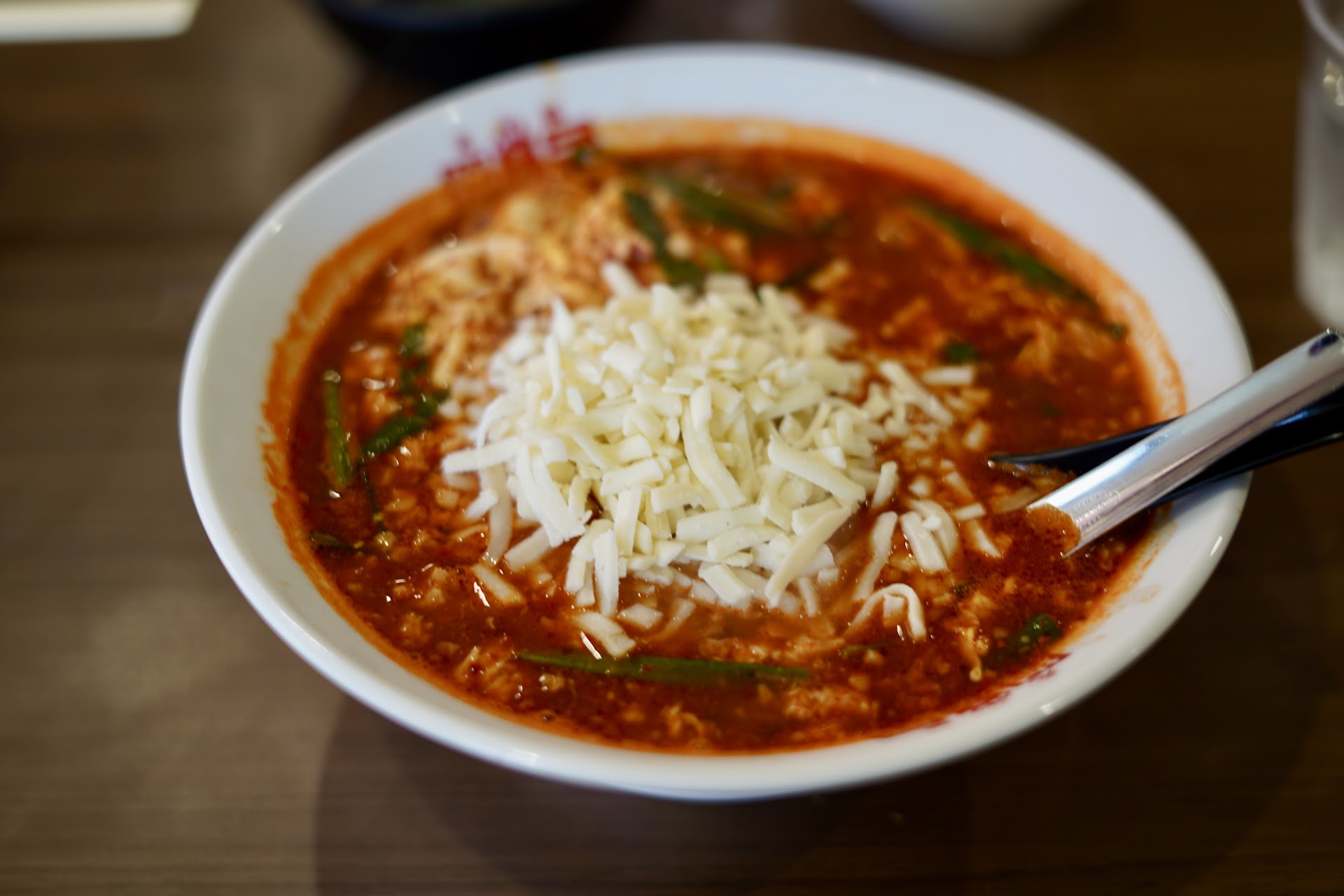 スープがしっかりしているというのは、白い辛麺を食べればわかる。白い辛麺は自分で唐辛子を調整するため、全く辛くない。 クリーミーな味で豆乳や塩麹を使っているようで、唐辛子を入れなければ子どもでも食べられる味。普通の辛麺がなくとも、これだけで勝負できるスープである。