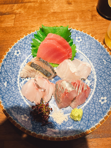 ▼お造り おまかせ一人前 五点 この日のラインナップは、