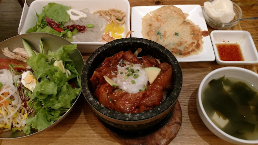 The food was delicious, we liked everything, we ate here: sundubu set, bibimpap and cold noodles, 2 beers, it all...