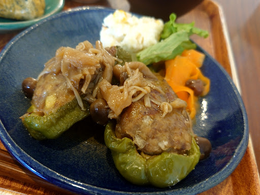 小金井に何軒かある就労支援施設型食事処の一つ「からしだね」へ久しぶりに。設立目的からは想像できない圧倒的な技術の料理を開業当初から出し続けている店です。 日替わりランチ(¥1000)は主菜に加えて小皿3個と味噌汁・白飯・デザートのプレート。まずは味噌汁を一口啜ってヒジキ煮を食べてみますが、両方とも根っこの出汁感が感じられ、相変わらず丁寧な仕込みです。主菜はネットリ肉感のあるピーマン肉詰で、肉の美味さに加えてキノコソースの旨味も合わさってメチャクチャ美味い。付け合せのキャロットラペも定食屋のレベルを遥かに超える丁寧仕込みですし、ポテサラも具沢山で嬉しくなります。小皿の大根醤油漬も歯応えがある絶妙なご飯の友で、あっという間に完食。最後の珈琲ゼリーも丁寧な仕込みですし、本当に満足感あるプレートでした。 就労訓練中の人はフロアを担当していて、調理担当の人は料理の仕上げをしながら指示を出して店全体を廻しています。その中で今回レベルの手がかかりまくり料理を仕込み、完全な美味さに仕上げる技術は本当に凄い。開業当初に比べて年配の人に交代したかな?という印象もありますが、やはり...
