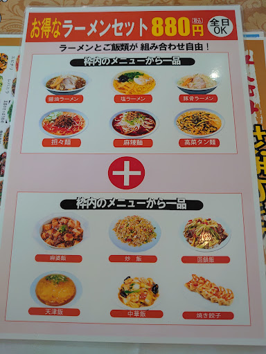 久しぶりに行ってきました。 4回目の訪問です。 メニューが新しくなったみたいでより良くなってしまってます。 写真も載せましたが税込780円で美味しいお料理1品にご飯がついてラーメンかスープを選んでいいって‥。そのラーメンも坦々麺を含んだ4種類から選べるんです。 私は醤油ラーメンを選んだのですが、あっさりしていながらも、スープが素朴で美味しかった。 普通のラーメンの半分の量だと思いますがシナチクと小さなチャーシューも付いていました。 ライスのおかわりも無料だそうです。勢いよく食べてみたのですがご飯は1口残してしまいました。次回はご飯を半分にしてもらいます。 私の隣の女性も嬉しそうに頂いていたのですが後半は雰囲気が暗くなってた気がしました。おそらく食べ切れないどうしよう、と言う私の気持ちと一緒だったんだと思います。 でもこれお腹ペコペコさんには嬉しいだろうなぁ。なんて優しいお店なのでしょう。 今日は酢豚定食にしたのですが味付けも優しいプロの味。 ここのお店の人たちって家族でやってるのかめちゃくちゃ仲が良くてその仲の良い店員さん達がお客さんに親切で、一度ここに来た人はリピーターになってしまうのでしょう。 ずっと元気で続けていて欲しいお店です。 ちなみに最後の定食の漬物は手ををつけてない状態です。好きじゃ...