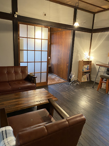 ペンキは黄色に塗り替えられていて、すごくお洒落な外観。 実は二階建てだったらしくて、急な斜面の階段から二階に上ると、隠れ家のような「古民家カフェ」が出現。 昭和家屋のレトロな感じが、たまらないですね~