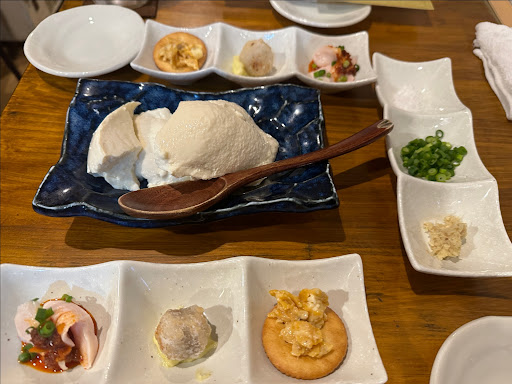 お通し:お値段以上でした。3種類ともおいしかったです。 自家製釜揚げ豆腐の薬味たっぷり冷奴:しっかり豆の味を味わえる。薬味と合わせたら文句なしでした。 鮮魚の盛り合わせ(2人前):種類が豊富で新鮮でした!絶対頼んで欲しいです。 大山どりもも肉のたたき:こちらもかなり美味しい!おろしぽん酢や柚子胡椒で味変ができ、飽きることなくぺろりと平らげました。 鮮魚のユッケ:他のお料理と比べると普通かも。こちらを頼むならお刺身のほうがいいかもです。 ネギトロとたくあんでトロたく巻き:盛り付けも素敵で、お魚の切り落としとたくあんが盛られており、とても美味しかったです。強いて言えばとびっこ、かいわれなどを追加されていたらもっと食感が楽しくなりおいしくなりそう…!と個人的に思いました。 サラッとざるそば:〆のお蕎麦。こだわりのようで、さらりと食べられました。