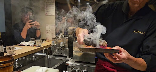 Read moreI learned of Sushi Shin from Mikey Chens YouTube video and I made a reservation online from the link on Google Maps. Surprisingly when we got there it was a rare occurrence where it was only me and my fiancé dining for dinner that night so it felt like a intimate private dining experience for just the two of us. Chef Shinji worked in California and New York for many years before moving back to Tokyo and opening this restaurant, he speaks English as well so it’s tourist friendly. The interior of the restaurant seats 6 counter seats so it’s a small space without much decor, it’s just you and the chef working behind the counter as the main focus. The quality of the fish was good and Shinji uses what’s in season. The only small downside for our course is there was a lot of toro and uni in the meal maybe around 3 each? So I felt the meal was a little repetitive even though he prepared them in different ways I would’ve preferred to have more shellfish or fish that were not as common even though his preparation made the fish tender and flavorful. We had ordered the house sake multiple times to go with our meal and I think the sake tasted good for the price. We had good conversation with the chef and the meal was enjoyable. After dinner the alleyways light up and you can explore the surrounding neighborhood along with the yokocho near the...