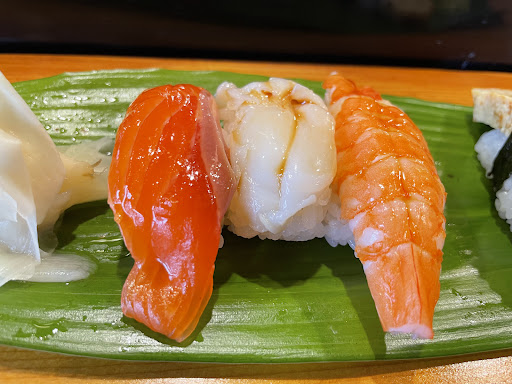煮切りが塗られているのでそのままいただけます。 ネタは厚切りで艶があり口に入れると手間をかけているのがわかる美味しいものでした。 玉もしっとりとして舌触りが良かったですし、海老も立派な型でした。
