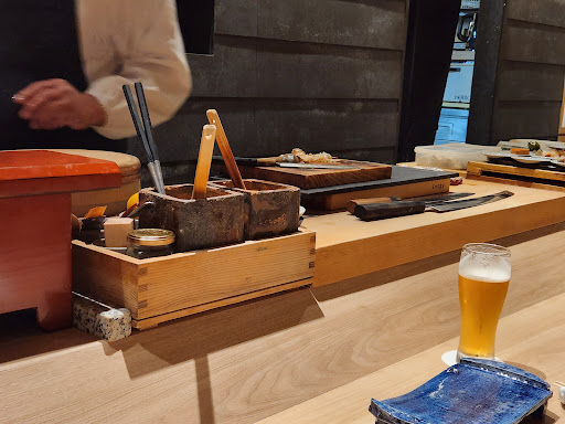 サービス 日本酒はメニューに書かれておらず、メニューを教えてほしいとお願いしたら「メニューないんで、飲み口言って」と言われました。特に好みの日本酒の特徴を聞いてくれる事はなく、辛口の日本酒が運ばれてきて説明もなく瓶をおかれるだけでした。態度も素っ気なく雑な対応をされてとても不愉快な気持ちになりました。 食事中、手で直接持って食べるメニューが幾つかあったのですが突然「持ってください」と渡され熱くて落としそうになったり、「左手出して」と唐突に言われたタレの穴子を直接置かれそれを右手で食べろといわれ驚きが止まりませんでした。手はたれと脂でベタベタになりました。おしぼりも最後のお抹茶までもらえないので乾いた、汚れたおしぼりをずっと使い続けなければいけません。最後のおしぼりも熱々で渡されます。席は選ぶ事が出来ないので個室でしたが、声をかけてくれるわけでもなく突然扉が開けられてあまり良い気分ではありませんでした。取り皿やグラスに飲み物が残っていても手が止まっていると、無言で下げられます。 大将もタメ口で小さい子に話しかけるような話し方で、こちらの話を聞いてくれるわけでもなく一方的でした フレンドリーな接客でもなく、ただ客を下に見ているんだなと全体的に感じました。
