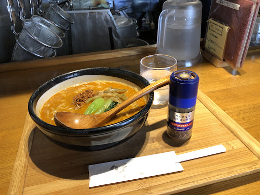 特別旨い…とお勧めのお店ではないかな? 確かに担々麺推しの方々多く見受けられます まぁ普通に美味しい でも、普通と大辛の二通りで注文できます(大辛なのに辛さそこそこ、ラー油三回し掛け、そして山椒をガリガリガリ) ゴマの風味を大切にされてるのかな? Cセットの餃子3個…皮厚く、中身の餡、味濃い目…全体的に堅い印象でした 提供時に提案された自家製の青唐辛子仕立てのポン酢…一口噛り、中の具材にたっぷり吸わせないとあまり効果的ではない たっぷりたっぷり、ビタビタでのお召し上がりをお勧めします 食後のサービスの(平日のランチタイムのみ)小振りなプリン…懐かしい硬めで玉子の味しっかりのやつ 頼まないと出てきません(他のお客さんには注文時にプリンどうしますか?…と確認されてたけど、俺にはなしでした) ありがとうございます でも、残念なのは、調理中の騒音…中華鍋のカンコンカンコンはリズムもあり、料理に期待を上げる音ですが、寸胴や鍋の蓋の開けしめや、下げた食器を洗う時のガチャガチャ…気になりました 次はとても気になる塩味のあさりラーメンに挑戦します 写真に上げたみどり色のやつはかみさん...