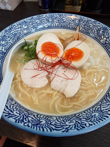 Read more6回来店。無料の駐車場5台がお店の裏にあります! 入口入ってすぐの所に券売機があります。4人用テーブルが奥に1っ。それ以外はカウンター席。トイレは綺麗でした。 1回目は昼食で看板メニューの濃厚鶏白湯らーめん味玉トッピングの食券購入。スープが確かに濃くてドロっとしてて美味しい!麺は普通よりちょい太い中太麺でスープと合う。刻んだ青ネギと玉ネギ2種類入ってて、隣の席の人は青ネギだけ抜いて貰ってました。メンマ美味しい。味玉は半熟加減は良いが味は普通。鶏チャーシューは弱い。 麺食べ終わってスープが美味しかったので替え玉をかためで注文。お釣りが出ると現金で受付けてくれないとの事で替玉の食券購入の為に席を立つ。替え玉用の麺は細麺でタレも掛かってないので別物だし、スープも薄まるし不味かった!次回は最初の麺の大盛りにしようと思いました。 食べ終わる頃に後から入って来たサラリーマンのグループの人と恰幅の良い店員さんが領収書で揉めてて嫌な雰囲気でした!退店時に雰囲気悪くてスタンプカード貰い損ねた。 2回目の来店は夕食で料金100円上乗せの超濃厚鶏白湯らーめん大盛り味玉トッピングで。昼と厨房の職人さんが違う、店長でした。 超濃厚は確かにスープが濃くて粘度も増してる。通常のと差額分比礼してる感じで両方美味しいのでその日の気分で決めたら良さそう!スープ以外は通常のと同じ。 5回目は昼食で13時過ぎでしたが運悪く初めて満席で、先に食券を買って真夏に外で待つ事に。この時は厨房に店長とバイトっぽい男の子。順番が来て席に着きましたが黒い帽子被った初めて見るバイトの子が、自分の後ろの後から入ったお客さんの注文から先に受けて自分の順番飛ばされる!案の定自分のラーメンはそのお客さんより後から出てきて。最後迄全く気付かず詫びの一言も無しで気分悪かったです!