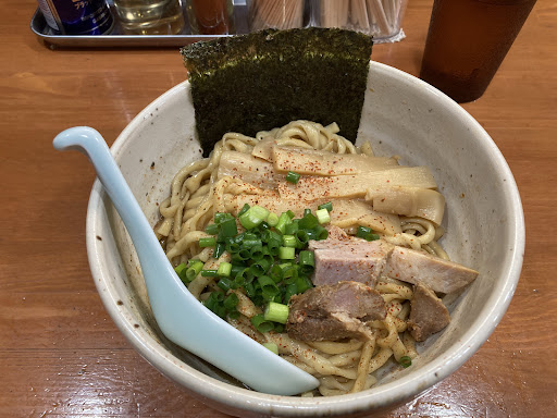 Read more【こんな味だったかな】 10数年ぶりの訪問。昼間のみの営業時間なのでなかなか訪問できず。 かつては濃厚魚介系つけめんの最盛期で、その中でも特に濃厚なスープ、家系並のゴワっとした太麺が印象だった。 今回は瑞風が臨時休業で久々に足を伸ばした。 平日の12時15分ごろに到着、外に待ち5名。15分程度待って着席して、そこから着丼まで10分程度。 入口左脇の券売機で目についた油そば大盛りをオーダー。 席案内とかはされないので空いてる席に座ってカウンターに券を置く。 節系のスープに加水率普通のモチっとした中太平打ち麺。あれ?隣の人のつけ麺を見ても同じような麺だったので10数年前とは麺が変わったかな。記憶が間違ってるのか。 味は新宿のおれの空の和えそばと同じような節系の油そばで悪くはないけれど、そこまでの特長はなく、ラー油が置いてないので味変できず単調。やっぱりつけ麺のサイドメニュー程度の扱いかと。 接客は期待しないで行けばそんなに悪い印象にならないけれど、こちらが察して対応する感じ。それでもまた行きたい!という味かと言...