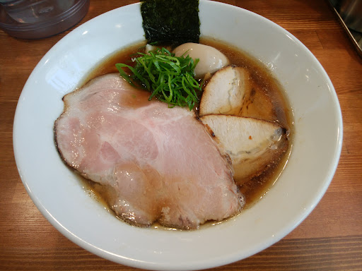 日曜のお昼前の訪問で前客4名程。待たずに席につけました。 永福町大勝軒出身の店主とのことで開店早々かなりの話題で、行く度に並びがありましたが少々落ち着いたようです。 この日は特製醤油らー麺を食す。1300円也。 スープは鶏・豚といった動物に魚介色々に複数の醤油をブレンドしてかなり凝った造りのよう。麺は手打ち(風?)の中太の縮れ麺で食感凄く良く美味しいです! 具材は大振りなレアロースに小ぶりなチャーシュー二切れ。他には長ネギに味玉。具材もどれも美味しいです。 お店は新しいだけあってキレイですごく明るい感じで居心地よいです。 お店の方の接客応対も感じいいです。 近場(と言っても歩いたら20分かかりますが)にとても良い...