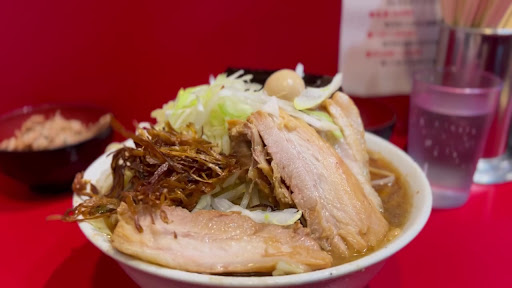 Read more今月オープンしたばかりみたいで情報が少ないのですが、動画見てるとどうしても食べたいなぁ、と金曜日の夕方開店20分前に到着。11番目に接続。中は8席ですね。ラーメン少なめ(麺230g) 脂生玉子(オススメ) 海苔大好きなのでトッピング。いゃあ旨かったなぁ~ 用心棒本号並に席の間隔が狭く肘が当たっちゃうね。 −−−−−−−−−−−−−−−−−−−−−−−−− 2024/6/13 2周年のお祝いを持って再訪 11:15頃到着で中は3人 そこからお客さんボチボチ入ってきた。 グル抜き麺少なめ 脂生卵・海苔・ほぐし豚 それと三谷さんからのサービス品で ネギ・焦がしネギ・ウズラ 10分ちょいで着丼 ほんとにグル抜きしてくれた?て感じの 奥深いスープは変わらずです。 ほぐし豚は味が濃い〜からグル抜きでちょうどいいのかも。 麺も変わらず旨いですね。 サービス品をぶち込んでいったら なんかまぜそばみたいになっちゃったよ。 ウズラ5個が重くて途中ギルティか?がよぎりましたが、なんとか完食 ご馳走様でした。 あ、券売機新しくなってましたね。 −−−−−−−−−−−−−−−−−−−−−−−−−−−−−− 2024/6/19 13:10訪問 先客4名 入口に千円札落ちてたのは初めてだな(笑) その後ほどなくして満員で外待ちに。 タイミング良かったです。 ラーメン少なめ 脂生卵・海苔 そしてグル(グルエースのこと、旨味調味料)抜きにて。 コールはニンニク多め(ここはマシではなく『多め』という必要があり)増したい時はこう言いましょう。ニンニク、だけでも入ります。今日は三谷さんじゃなくて筆頭助手さん?の麺上げだったからニンニクいつもより多かった。 海苔の乗せ忘れはよくある事(笑) 最近いつもグル抜きオーダーしてるけど、グルエースいらないですよ、そのままで充分旨味があり、グルエースは置いてあるんですが、入れる必要は感じないな。 二郎や二郎系インスパイアはグルを小さじ1から大さじ1入れるのが普通だけど、ここは抜きでも全然美味しいからお試しあれ〜 −−−−−2024/10/3 ...