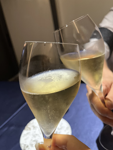 sez支配人の極めて美しい所作に見惚れつつも、若きシェフが創作されるイタリアンと和との共存を心待ちにしてシャンパンで乾杯🥂