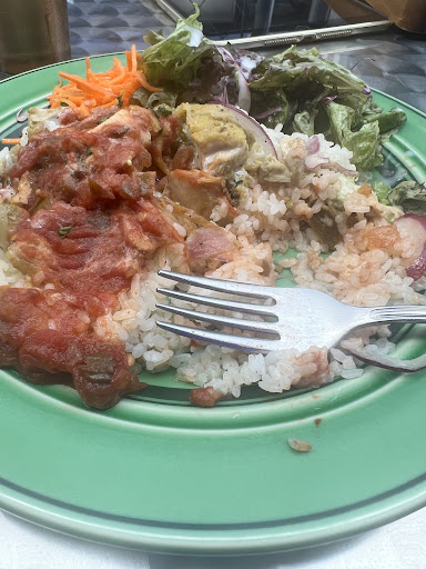 Chicken is bland and not flavorful. They used regular white rice instead the normal yellow rice and just lacks flavors essential to chicken over riced. Even the salsa had no flavor. Couldn’t even finish the meal.