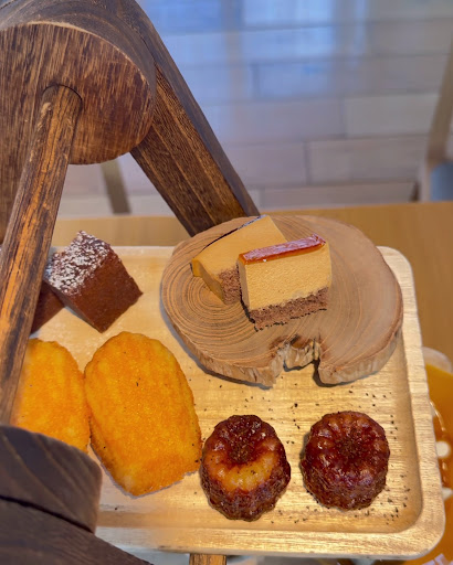 上段: ・コーヒーのカヌレ。 コーヒーは外に降ってあるだけでなく、 中にも練り込んである。