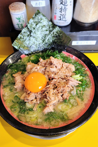 【11月より新スープ】 スープを変更とのことで再訪。 まず「お好み」が以前のように選択可能に戻りました。これは待ち望んでいた人が多いのではないでしょうか。豚骨スープはその性質上、万人受けする訳ではなく、同一の味では一人一人の舌を満足させることは不可能。よって、麺硬め・味濃いめ・脂少なめ等が選べるのは、良い改善だと思います。 次にスープですが、以前は脂ギトギトの濃厚スープであったし、脂少なめの選択肢を廃止していた為、一度訪問したら再訪を躊躇った人も多いのではないでしょうか?今回のスープの変更は原点回帰で、哲麺時代のそれに戻ったような気がします。良く言えば多方面に好まれるライトな飲みやすいスープ、悪く言えば強烈なパンチ力が不足のまとまってしまったスープ。ただ、卓上調味料でヘヴィにも変えられますので、ガチ勢の方は味の上乗せをしちゃって下さい。 麺に関しては、細麺に戻りました。個人的には、変更前よりこれの方が合うと思いますが、異論は認めます。 最後に、チャーシュー。以前はチャーシューをほぐした物がデフォでしたが、それは「味玉ラーメン」のみとなり、他のメニューは通常の一枚チャーシューに戻りました。どっちが良いとかではなく、これも好みの問題です。なんなら、トッピングにほろほろチャーシューが残存してます...