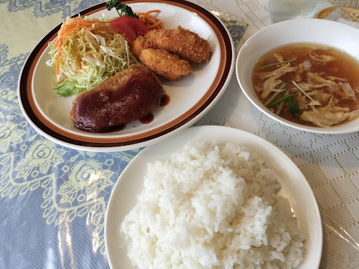 Read more私は駅近のマンションに住んでいて、飲食店なら徒歩圏内に沢山あります。だがそのほとんどはチェーン店。昭和の香りがする個人店はないかとネット検索をしてヒット。バイクで10分程の距離、古びた団地のシャッター商店街にポツンと1軒。寂れた観光地の駅前にありそうな味のある外観。扉を開けるとスティーヴン・セガールの様なガタイの良い御主人がお出迎え。 恐る恐るカツカレー大盛りを注文。揚げたてのカツはキメの細かいパン粉で如何にも洋食風。ライトブラウンのルーは程よい酸味があり、ほのかにバターの香るこれまた洋食の王道の味。町中華や蕎麦屋のカツカレーとは一線を画す洋食の醍醐味を堪能!質・量共に大満足の逸品。 後日再訪、オムライス(サラダ添え)大盛りを注文。両端にヒネリの効いた美しいフォルム。バターの香る優しい味付けに大きなチキンがゴロゴロ。昭和の味を守り続ける正統派に感激もひとしお!!気を良くしてクリームソーダを追加注文。毒々しい色で人工的な味のものが多い中、自然な色に優しい味。御主人と話してみると気さくな方で、仕入先にこだわりがあるそうです。 今日はハンバーグと海老フライ(タルタルソース付)大盛り。細長い海老はジックリと火が通り、尻尾まで完食。ハンバーグは小振りだがしっかりとした肉感、シャリアピンソースが珍しい。目玉焼を割ると、トロトロの黄身が流れて更に美味しかった。クラッシック音楽が優雅に流れる昭和レトロな店内で、ノスタルジー満載の3日間、ごちそうさまでした。 聞けば御主人は私と同郷の岩手県出身。高校卒業後都内のホテルで厳しい修業を重ね、40年程前に独立してこのお店を始めたそうです。最近奥様を亡くされてからは、ランチタイムのみパートさんを雇い、夜はワンオペとのこと。お元気そうに見えても70歳、健康に気を付けて末長く続け...