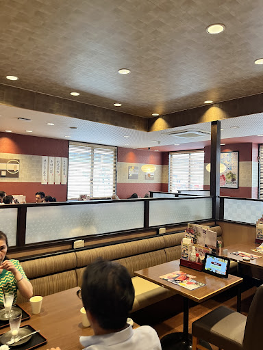 This is a typical family restaurant in Japan. Foods are Japanese style only. there is location for drink machine, wipes, water are self service. I've been here a decade ago, so I wanted to try again. My husband and I went quite early about bit after 10. My husband got a beer, seasonal rice ,and small tempura. He said rice was bit mushy and tempura was bit oily.. I got both buckwheat noodles and udon: (wheat noodles). They came with three kinds of dipping sauces, usual soy, walnut & sesame, and yam grated ones which was not fan of because it's slimy. I enjoyed the sesame ones. service lady was super helpful to order. I was happy with my meal but my husband was not ... sadly. totally forgot to take pictures,...